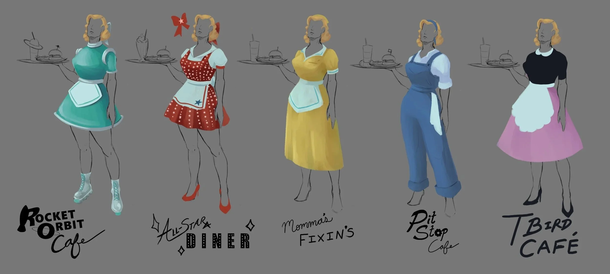 Several ideations for the official theme of the diner was done, including Rocket Orbit Diner & All-Star Diner. Based on the Quest storyline, it was decided Clicky, DreamHack’s mascot, would be the face of the diner opposed to having characters incorporated into the storyline that were not brand partnerships.